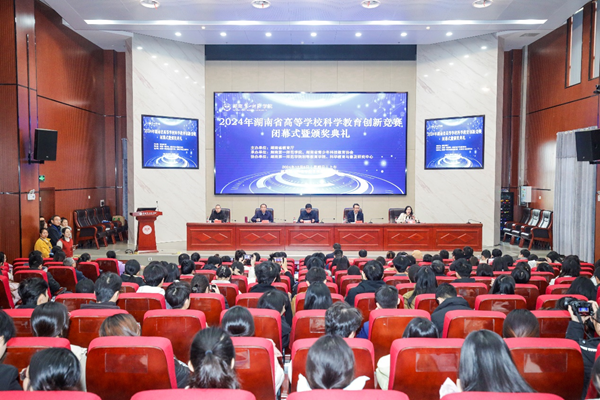 12月6日至8日,2024年湖南省高等学校科学教育创新竞赛在beat365举行。湖南省教育厅教师工作与师范教育处副处长缪高勇,beat365党委委员、副校长彭晓辉,湖南省青少年科技教育协会理事长、总裁判长刘志敏,beat365教务处、初等教育学院负责人出席大赛闭幕式暨颁奖典礼,并为获奖选手和单位颁奖。