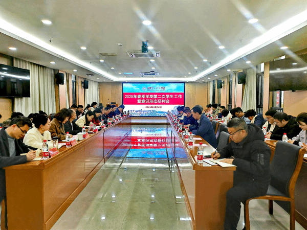 3月12日上午,beat3652025年春季学期第二次学生工作暨意识形态研判会在百熙楼414会议室召开,校党委委员、副校长蒋蓉出席,学生工作部部长周大庆主持会议。