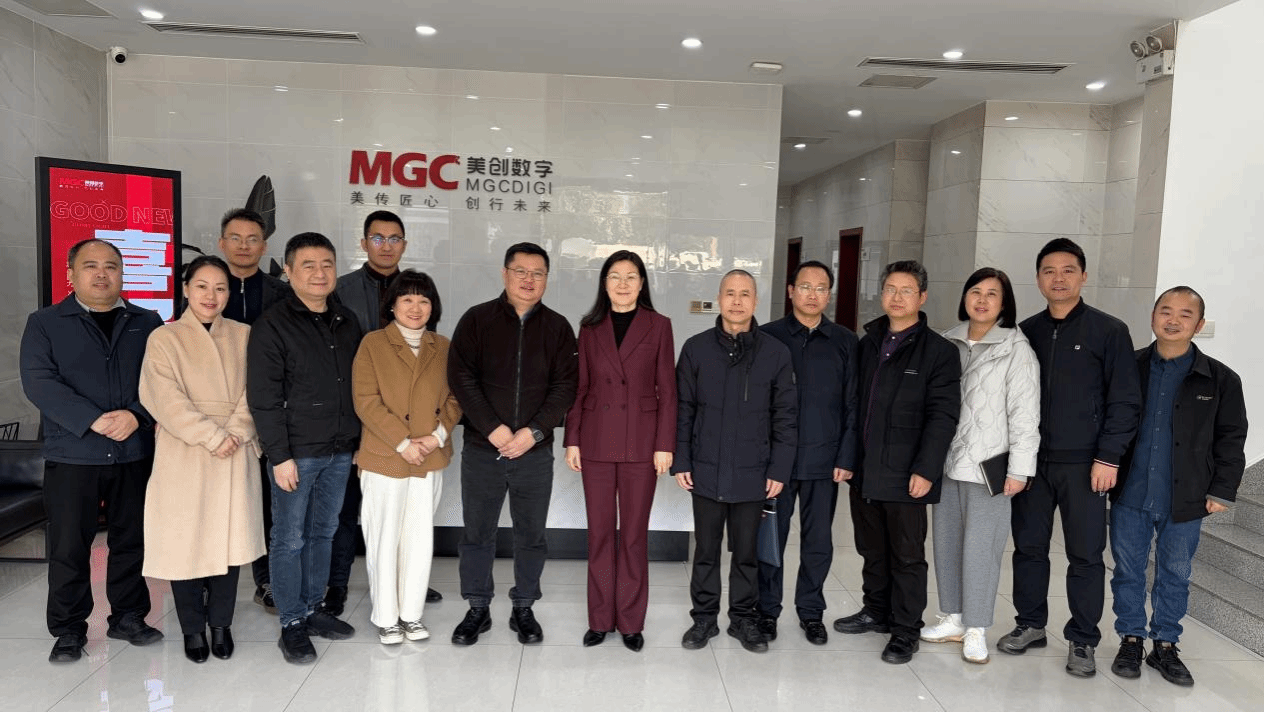 1月9日上午,在湖南美创数字科技有限公司,董事长杨红爵、总经理汤军等陪同考察组参观了多媒体视听工程、互动展项、展示空间等公司最新研发成果。作为湖南省专精特新企业和高新技术企业,美创数字科技在数字视觉新媒体、智慧博物馆、沉浸式互动体验等领域具有行业领先优势。考察组对其技术创新能力和产学研转化成果给予了高度评价。