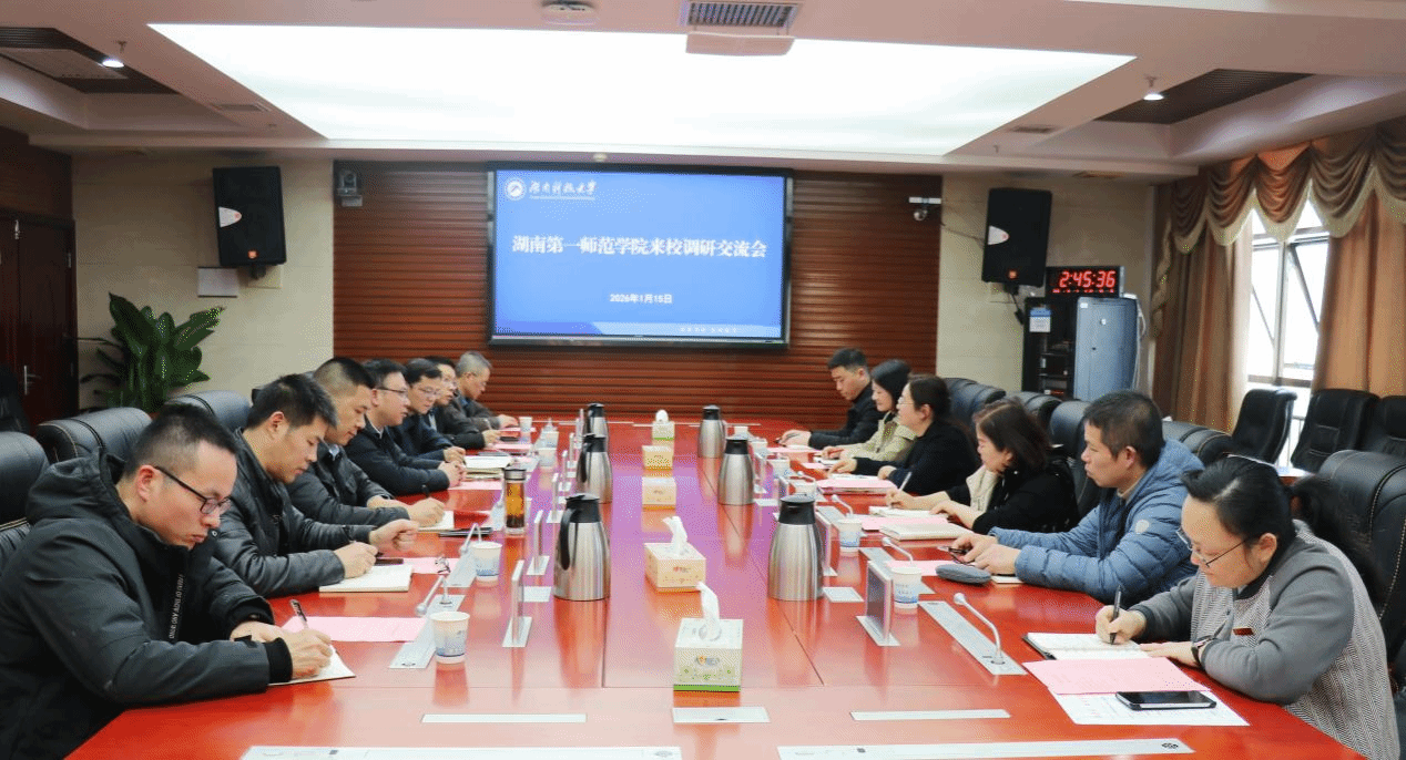 1月15日下午,校党委委员、纪委书记凌艳平率队赴湖南科技大学开展专题调研。湖南科技大学党委委员、纪委书记郭时印主持调研座谈会。