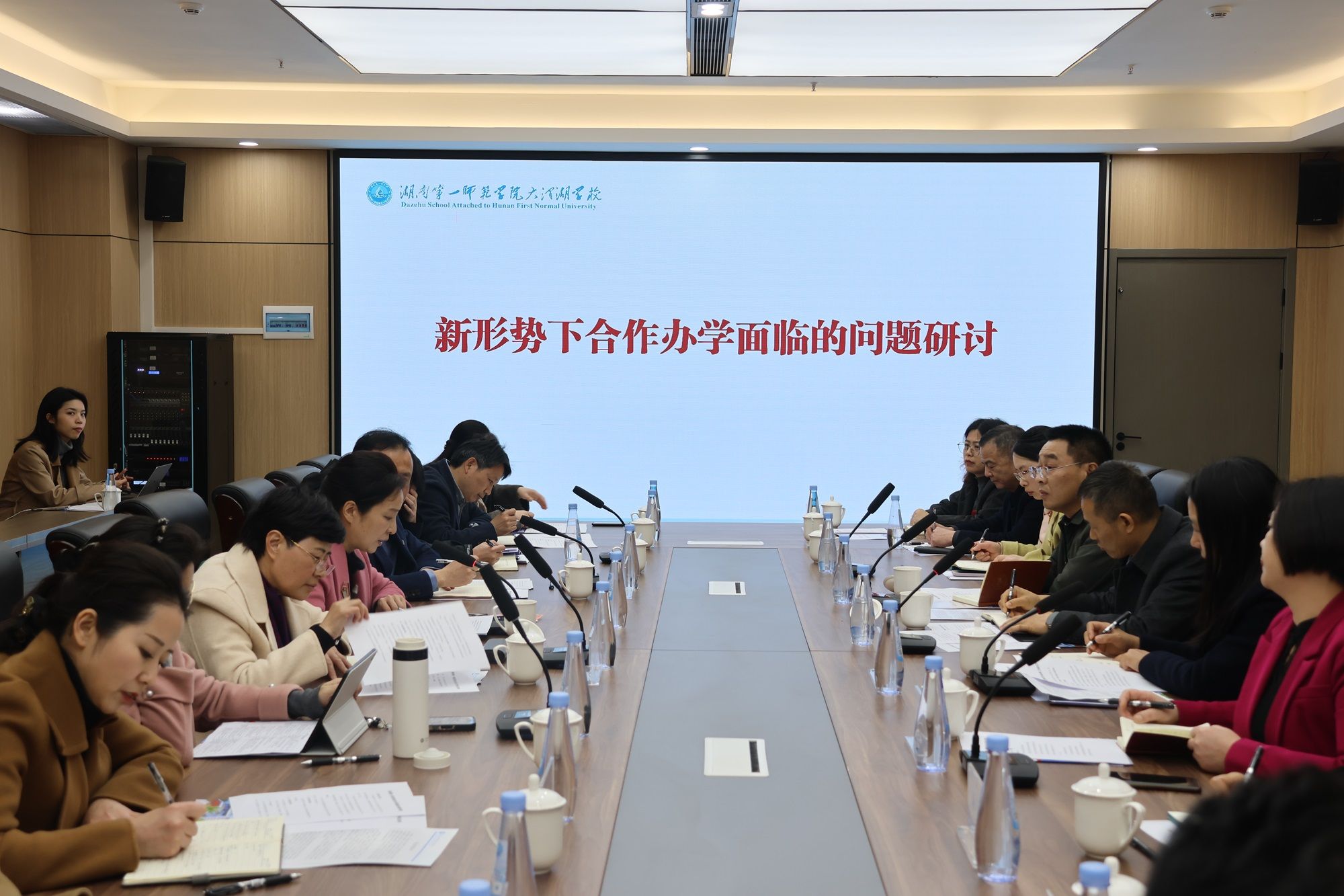 研讨会上,大泽湖学校校长潘勇汇报了学校办学现状、成果及发展规划。研讨环节聚焦新时代合作办学面临挑战的核心议题,围绕高校资源转化、办学经费保障、队伍建设优化、学校管理提升等展开深入交流。外派校长结合实际工作,就建立实习与研究联合基地、打造“一师”合作办学模式、优化外派干部管理、提升初中学段教学质量等具体挑战各抒己见,凝聚了诸多建设性共识。现代教育发展学院对2026年合作办学工作进行了全面部署,明确了干部培训、成果展示、活动开展等重点工作任务。