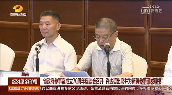6月11日下午,湖南省政府参事室成立70周年座谈会在长沙召开,省委副书记、省长许达哲出席并为11名新聘参事颁发聘书,省委常委、统战部部长黄兰香出席会议。省政府秘书长王群主持会议并宣读新聘参事聘任文件。