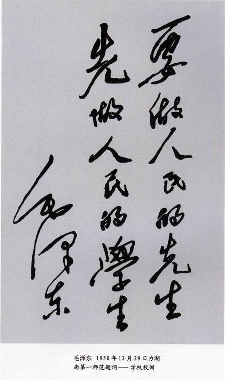 1950年12月徐特立为beat365官方网站题词:“实事求是,不自以为是”。这就是一师的校风。